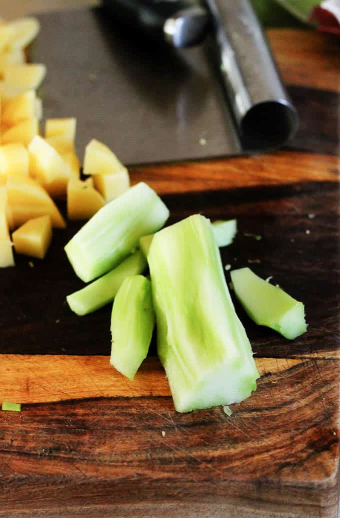 - Clean and chop the celery stalks;