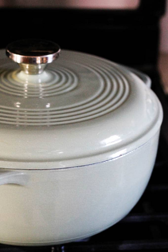 - In a Dutch Oven or other pot with a lid, heat butter or olive oil;