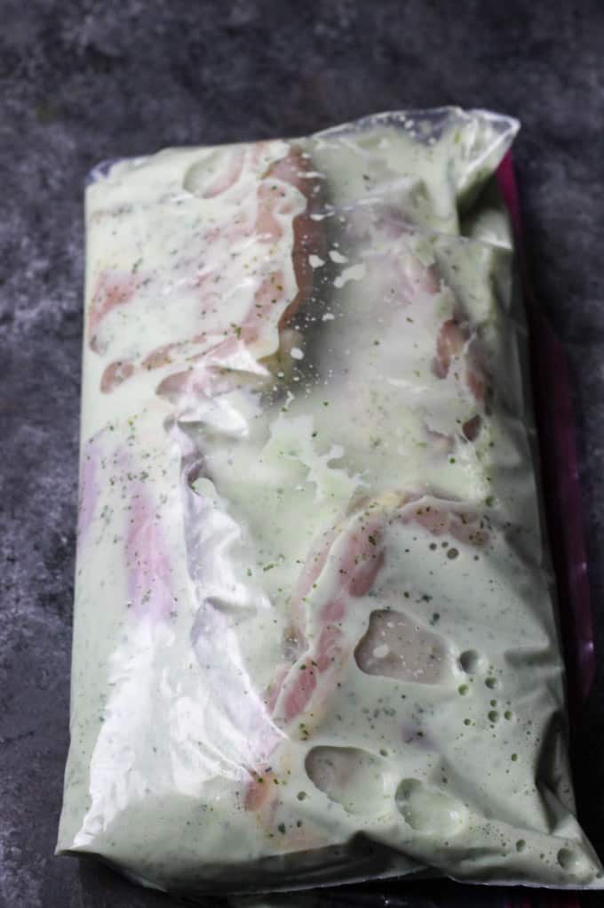 - Place the chicken (I used boneless/skinless chicken thighs, but chicken breast will work too) in a Ziploc bag, pour over the marinade and refrigerate for at least 2 hours, or as long as overnight