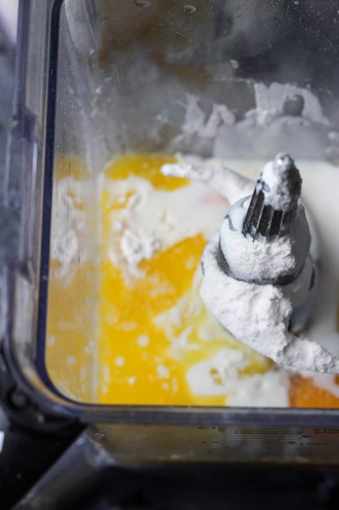 Step 1: After your chicken has been already marinating in the refrigerator for at least an hour, you can start working on your crepe batter. Add all of your crepe batter ingredients into a blender and blend until smooth. Then refrigerate it for approximately a half-hour.