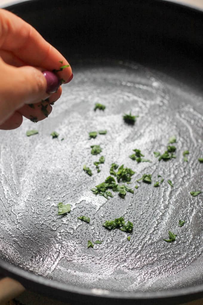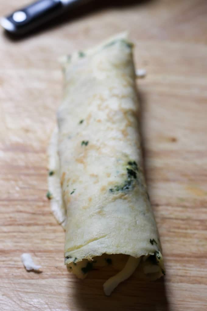 Expert tip: I used a little trick here to make these crepes even more flavorful. Once I buttered the skillet, I sprinkled fresh parsley and then added it to the batter. To be quite honest I needed to constrain myself from eating these kefir herb crepes straight from the skillet…they were so damn good.Â