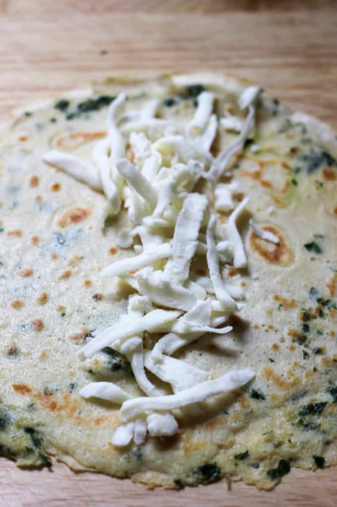 - 1 cup Mozzarella Cheese; shredded half for the inside of the crepes and the rest on the outside