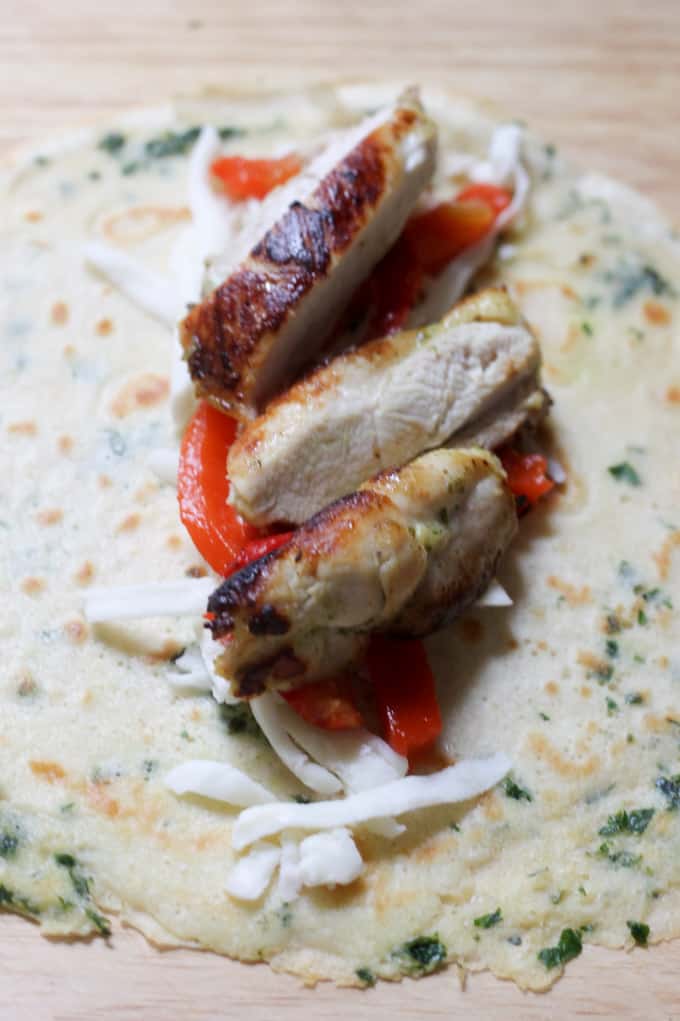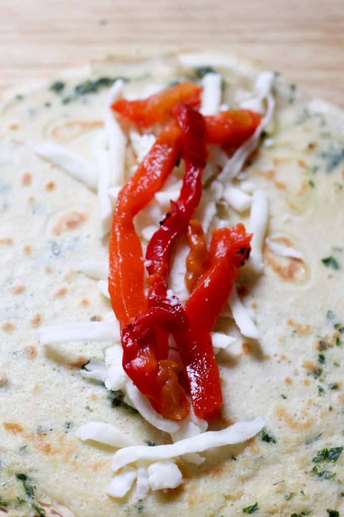 So, chicken marinated in the cilantro parsley kefir is incredible, but when you added roasted peppers and mozzarella to it…it ascends to whatever is the next level after incredible. But wait, I forgot to mention that the crepes themselves are also super delicious. Instead of milk, like I normally use to make a perfect French crepes, I used kefir. Oh my…let me tell you, these crepes are out of this world delicious!