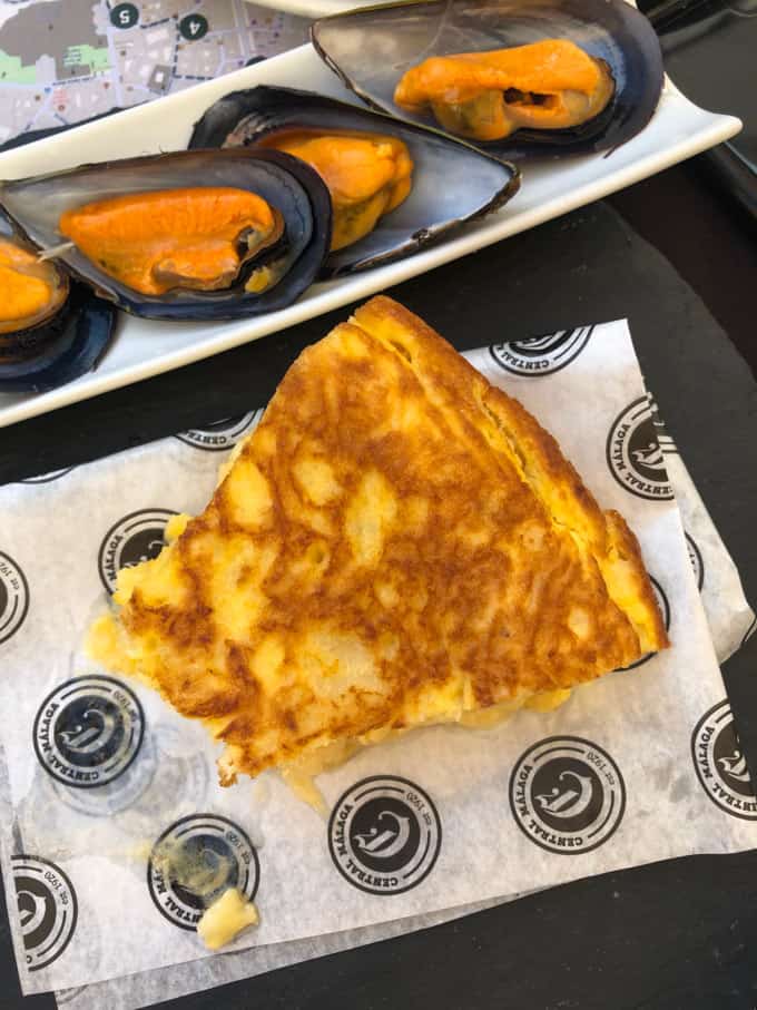 When we first got into Malaga, my husband and I didn’t have even a minute of sleep (as was the case with our toddler, which obviously meant troubles on a horizon) but we desperately needed a healthy dose of caffeine.  Lo & behold, a Starbucks miraculously appeared, like an oasis. In addition to satisfying our need for caffeine, we also thought it best to scratch our hunger itch. They had warm sandwiches with Serrano Ham, Manchego Cheese, and shredded tomato. I took a bite and was in heaven. Why they can’t make these it the U.S. (that baffles me)? While this sandwich was our first encounter with the local cuisine, we then spent the next two days eating our way through the city, in small waves of tapas.